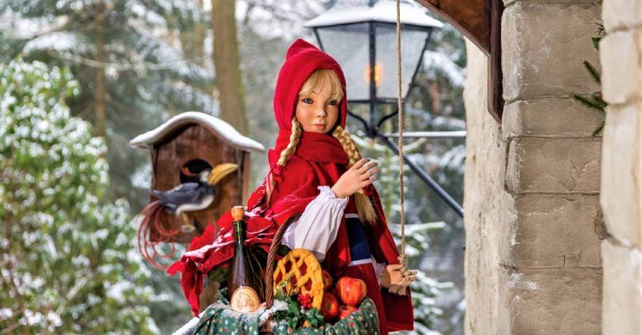 Семь гномиков грустят возле хрустального склепа, в котором лежит прелестная Белоснежка, братик и сестренка Гензель и Гретель сидят в пряничном домике, куда их заманила злая фея. Красная шапочка с наполненной гостинцами корзинкой, отправляется к бабушке, а серый волк уже поджидает девочку, притворившись бабушкой и лежа в ее постели с чепчиком на голове. Длинношеий человек (Longneck) из сказки братьев Гримм «Шестеро слуг» начинает поднимать и опускать свою шею. Подсчитано, что за год он выдвигает шею более 61 000 раз.